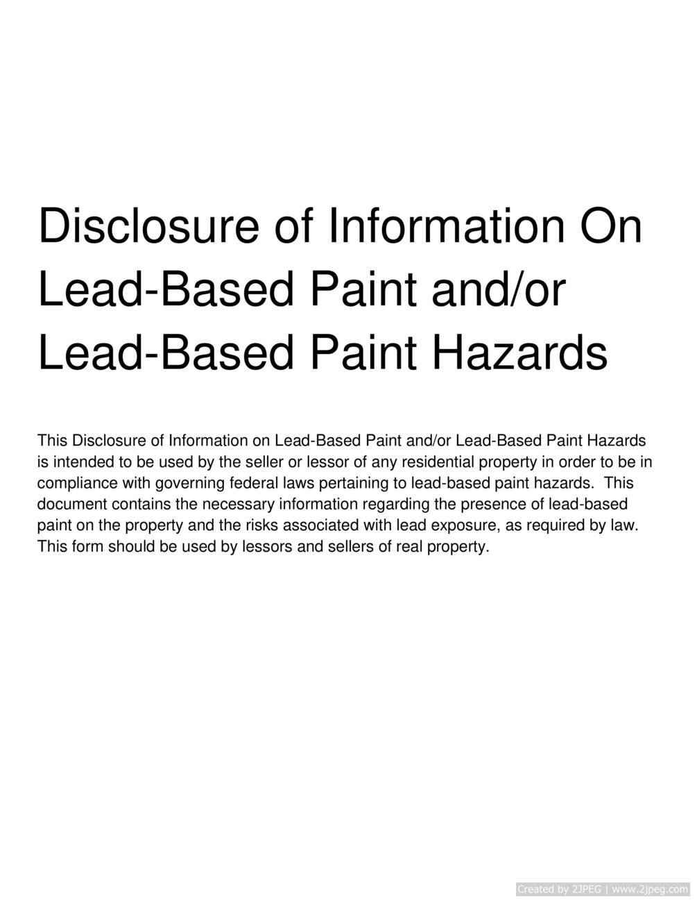 Disclosure of Information On LeadBased Paint and/or LeadBased Paint